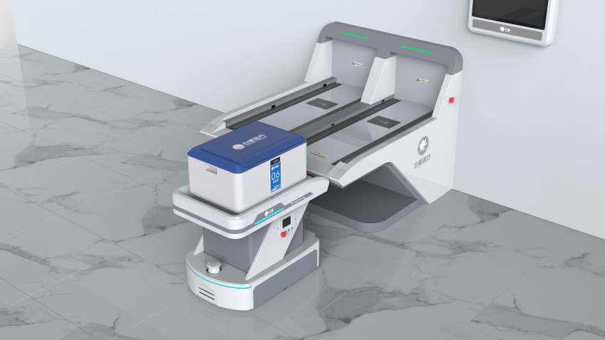 “箱式物流传输系统”通过搭建收发工作站、提升系统、自动传输线等将医院的各个科室连接起来,形成一个独立的医用物品运输通道,以周转箱为载体,实现医院物资自动化传输。